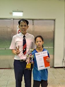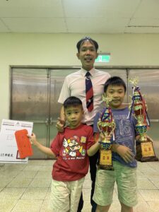 中年級組的品翔,大班時就開始接觸象棋的他,呆萌可愛又認真,有一陣子疫情線上課,品翔專注度下降,棋力跟比賽戰績都遇到很大瓶頸,長期的堅持下,最近象棋的種子突然開始發芽茁壯,捧起手中久違的獎盃
